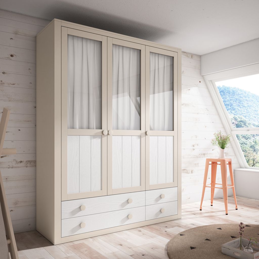 Armarios disponibles en 1, 2, 3 y 4 puertas, armarios rincón, armarios correderos con cajonera interior y estante; fabricados en varios colores y medidas; armarios cajeados.