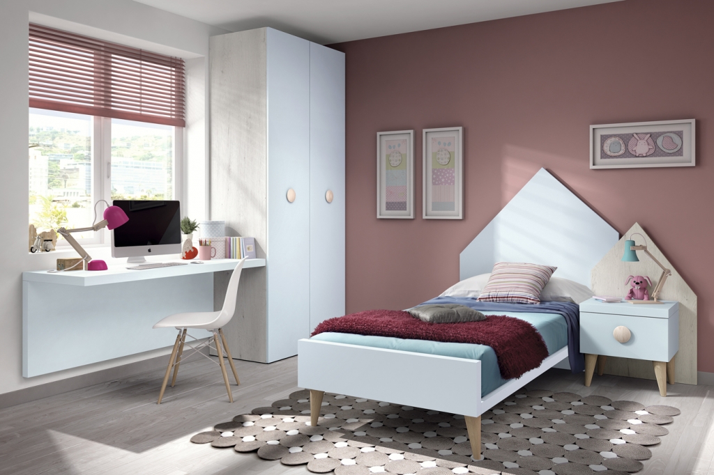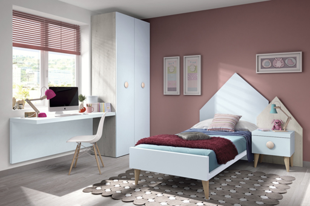 Dormitorio juvenil realizado en tablero de melamina de primera calidad, resistente a rayaduras y manchas.  Reune las caracteristicas según normas UNE-EN 14322