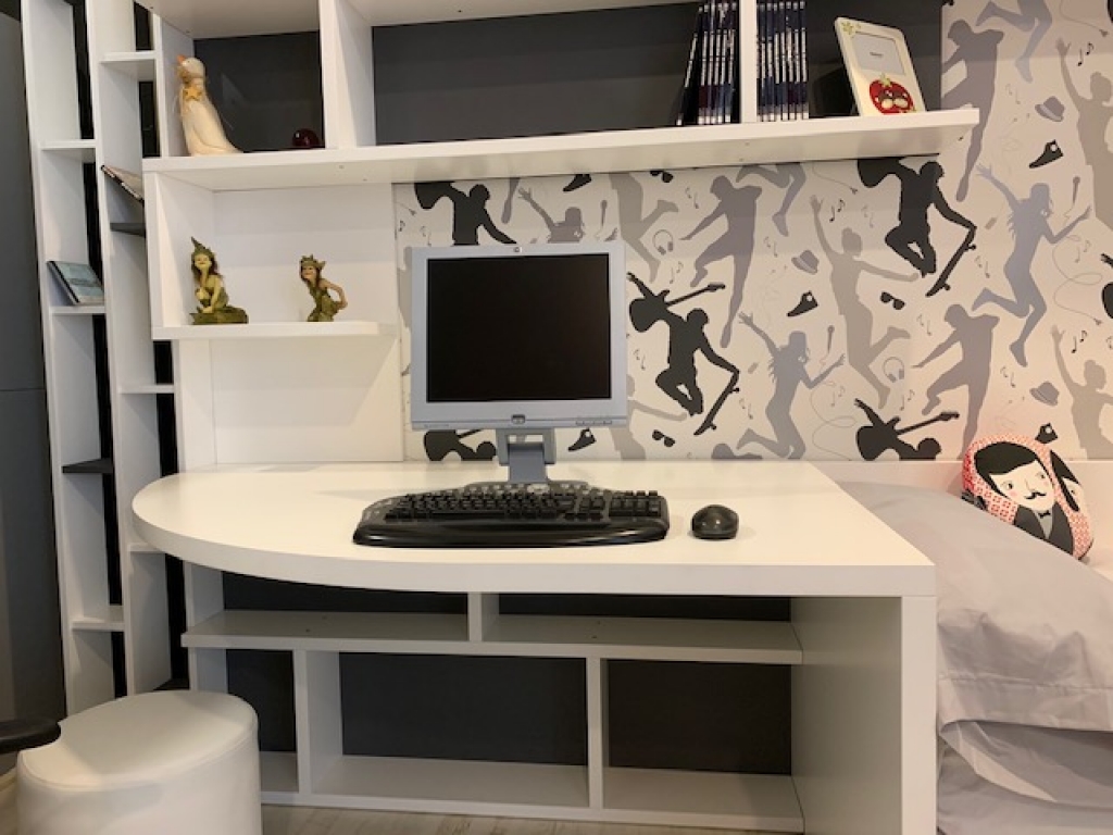 Dormitorio en tablero de  MDF lacado blanco mate / gris antracita